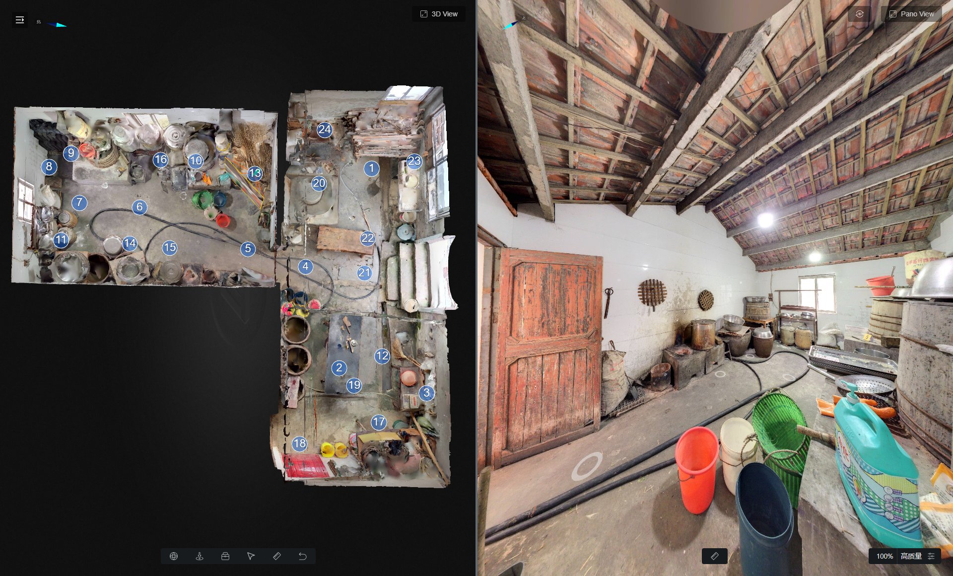 数据处理:通过点云处理、MESH网格、3DGS等空间智能算法,生成三维数据模型,实现建模完整度、连贯性及清晰度。