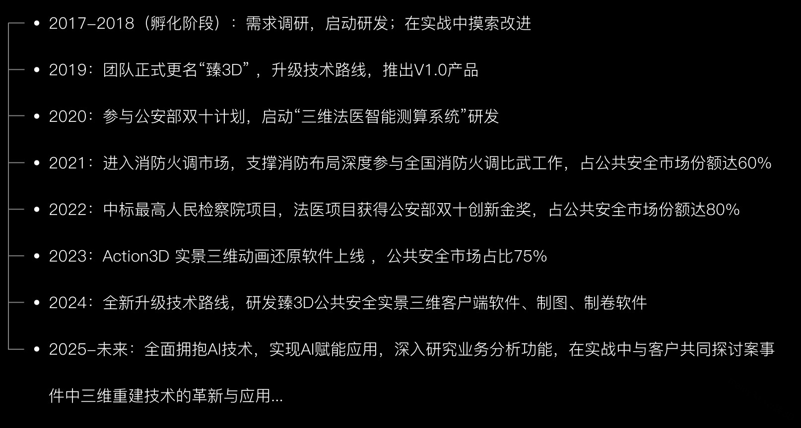 “臻3D团队”从2017年开始深入研究公共安全三维数字化应用,产品已经覆盖全国30个省级行政区,为公共安全客户服务采集800+起刑事、火灾、爆炸、交通事故等现场。